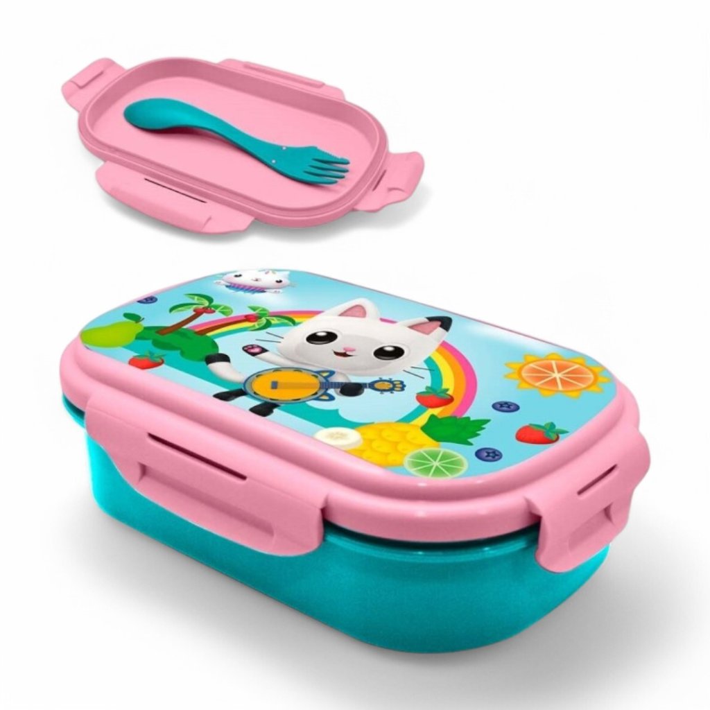 Praktický desiatový box s vidličkou. Tento box na desiatu je vhodný do školy aj na cesty a výlety. Na veku je vyobrazený krásny motív rozprávky Gabby´s Dollhouse.