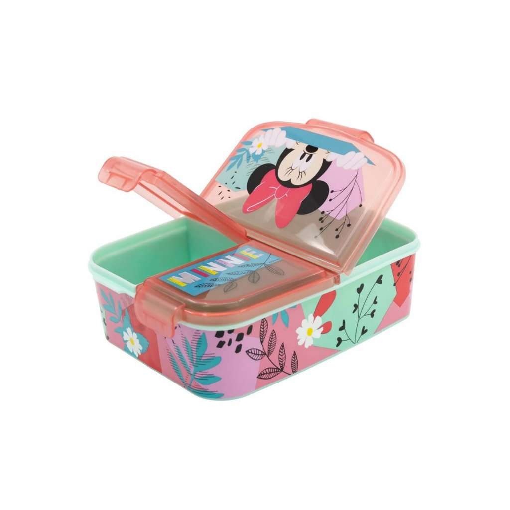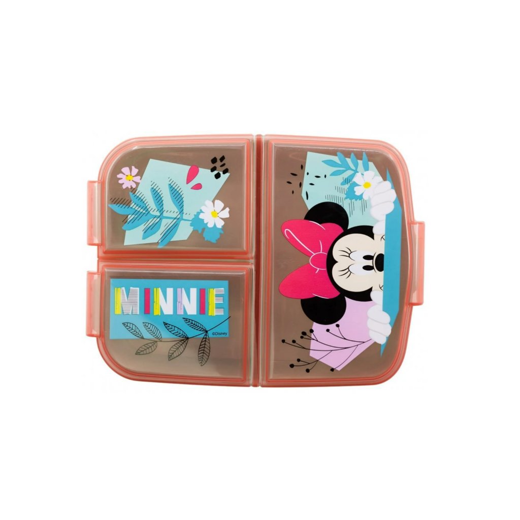 Praktický desiatový box s 3 samostatnými priehradkami. Tento box na desiatu je vhodný do školy aj na cesty a výlety. Na veku je vyobrazený motív s Minnie Mouse