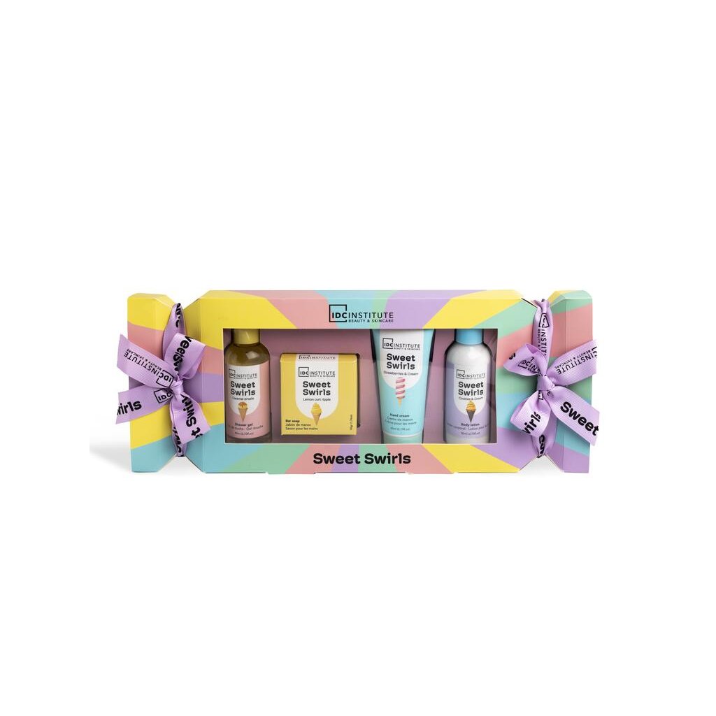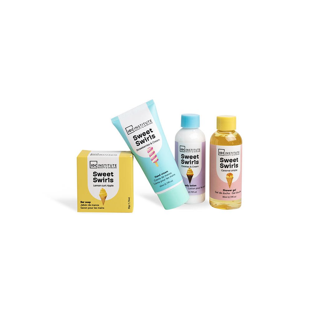 Sweet Swirl a jej malé veľké radosti v pastelových farbách a sladkých vôňach predstavuje darčekové balenie sprchového gélu, telového mlieka, krému na ruky a tuhého mydla.