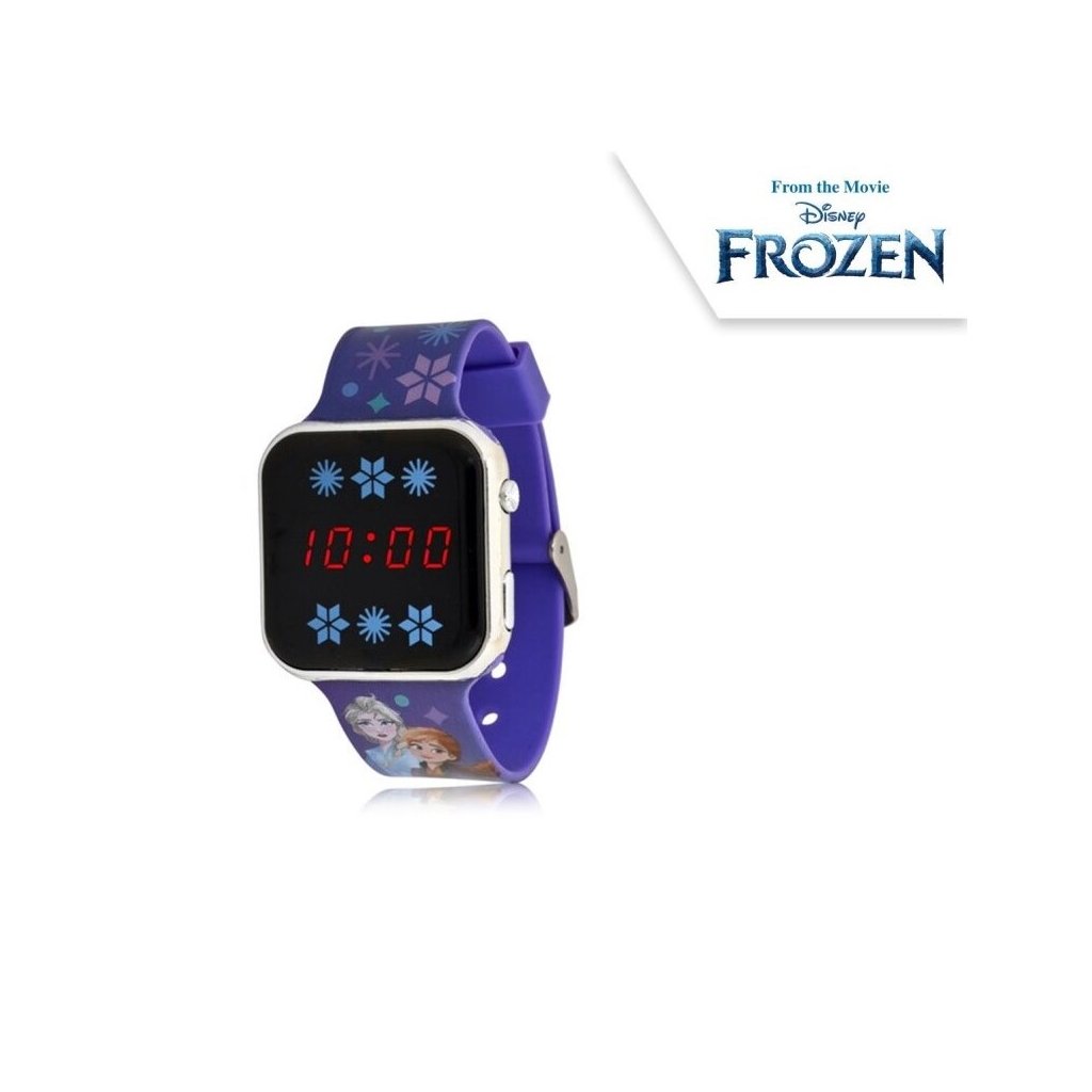 Fialové dievčenské LED hodinky s vyobrazenou Elsou a Annou.