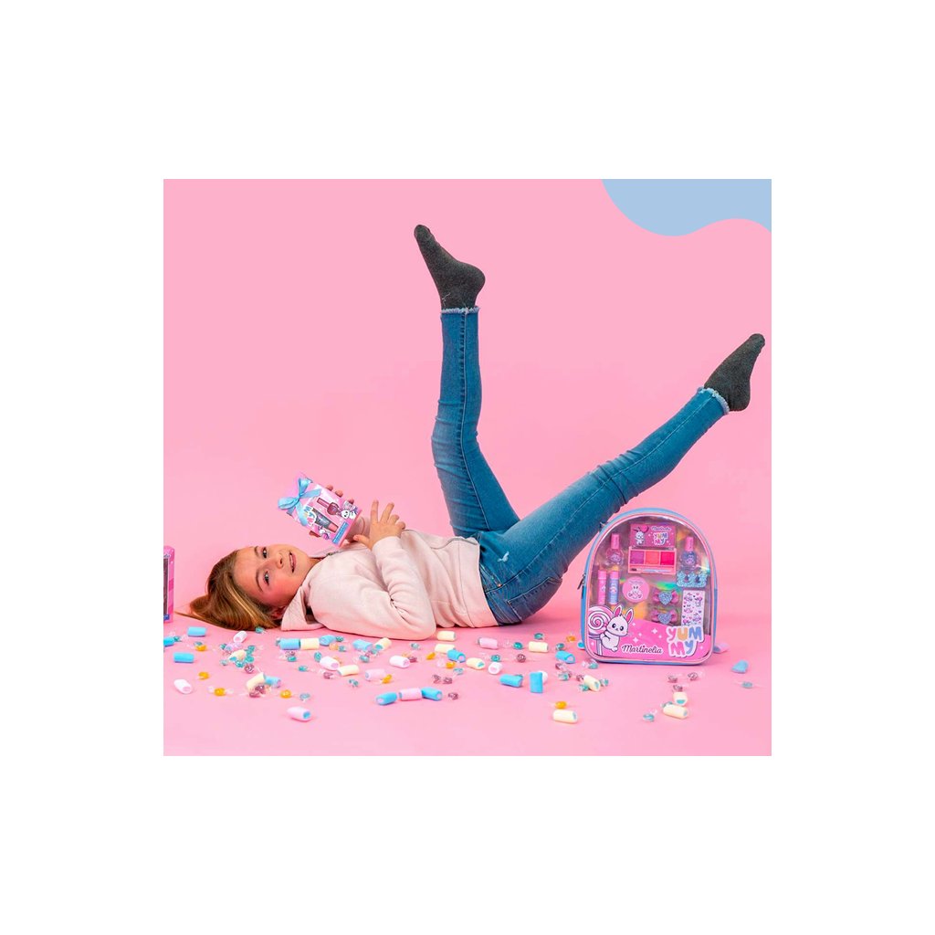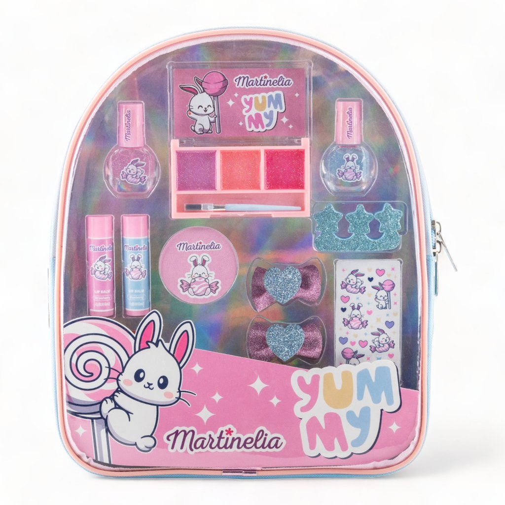 Kráľovstvo detskej zábavy ukryté v ruksaku v sebe ukrýva laky na nechty, pilník, penový oddeľovač na prsty, jahodový a čučoriedkový balzam na pery, trblietavé lesky na pery, sponky do vlasov, nálepky. Drobnosti, ktoré spravia radosť každej malej parádnici.