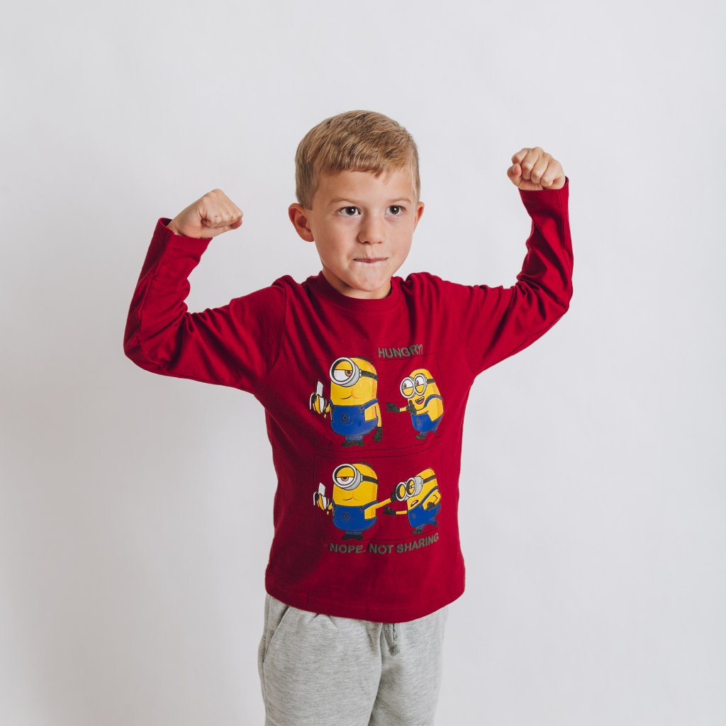 Kvalitné tričko s dlhým rukávom s motívom Mimoňov. Jedinečný dizajn, živé farby a veselá grafika. Pohodlný, neobmedzujúci strih. Ideálne pre chladnejšie dni.