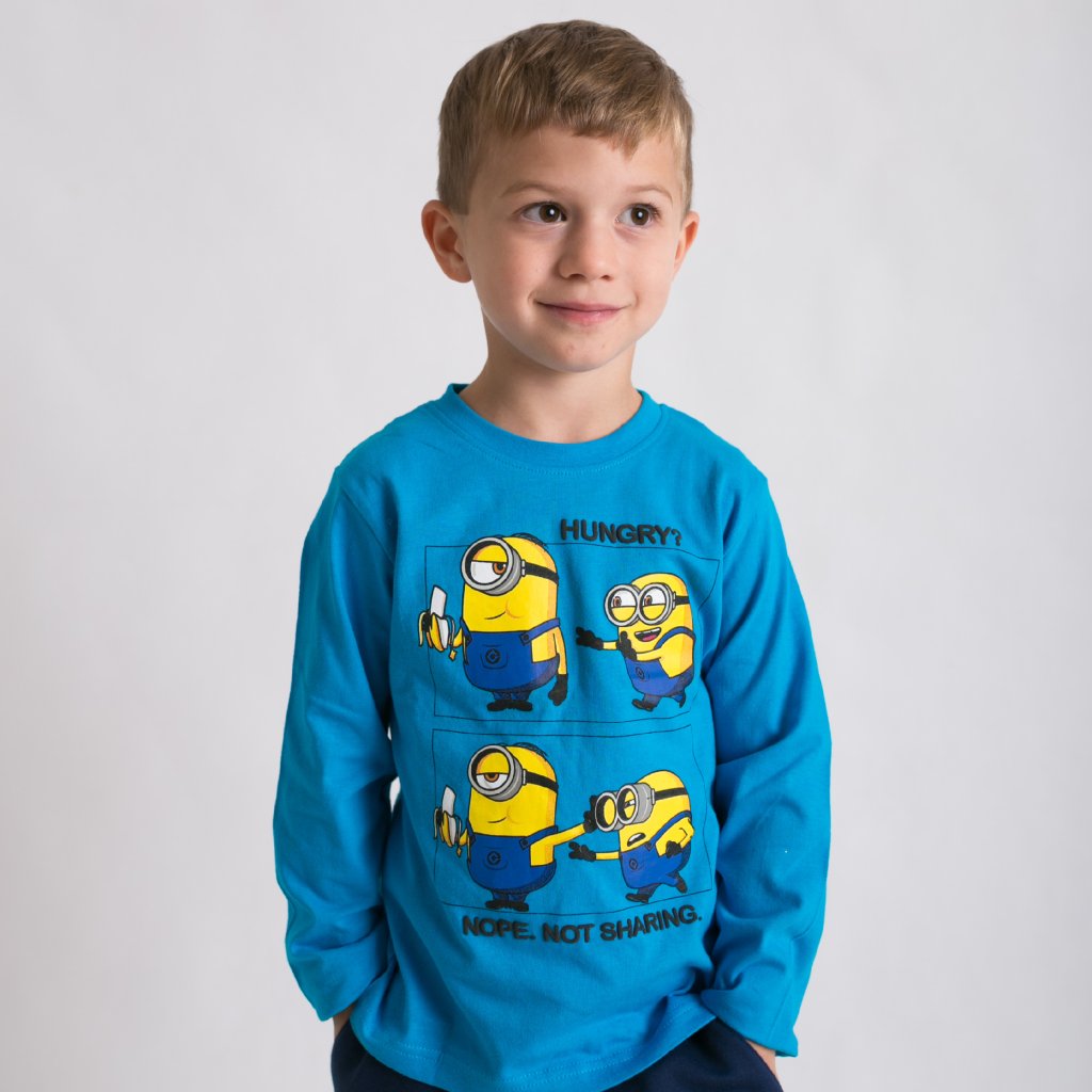 Kvalitné tričko s dlhým rukávom s motívom Mimoňov. Jedinečný dizajn, živé farby a veselá grafika. Pohodlný, neobmedzujúci strih. Ideálne pre chladnejšie dni.