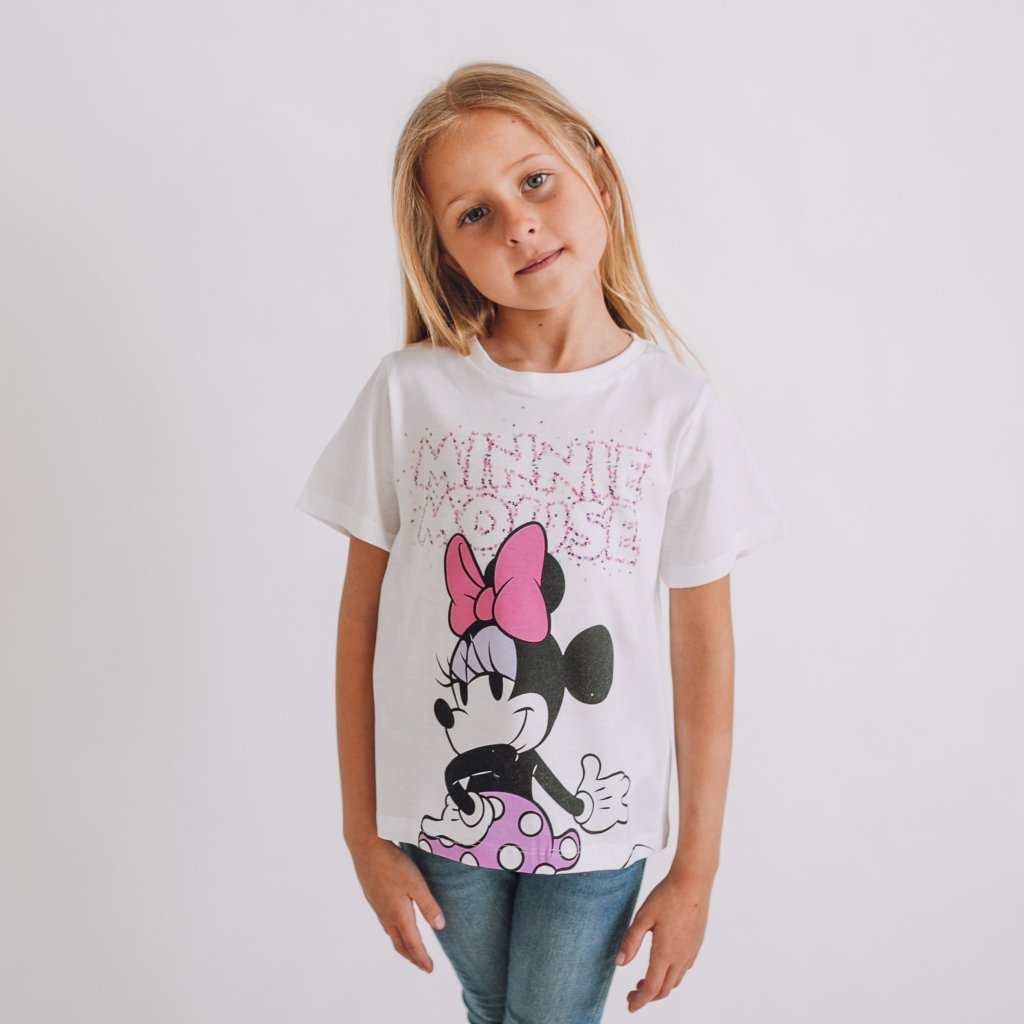 Detské tričko s krátkym rukávom Minnie Mouse. Jedinečný dizajn, živé farby a veselá grafika. Pohodlný, neobmedzujúci strih.
