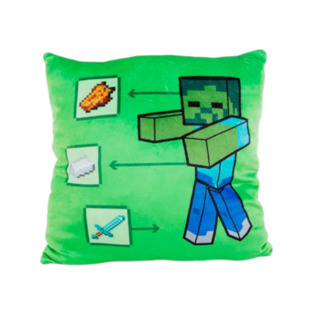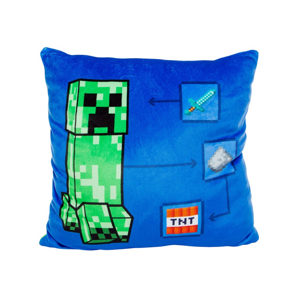 Ako na nástrahy Minecraftu? Návod nájdeme priamo na vankúši! Mäkký detský vankúš s motívom z obľúbenej hry Minecraft prinesie do detskej izby tú pravú hráčsku atmosféru. Je vyrobený z príjemného materiálu, ktorý je jemný na dotyk a ideálny na oddych, hranie alebo cestovanie.